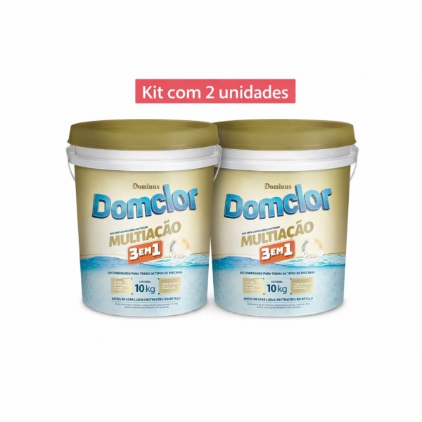 DomClor Multiação 3 em 1 é um cloro destinado a desinfecção de piscinas, produto com 40% de cloro ativo, por ser estabilizado, fica mais tempo em água, recomendado para todos os tipos de piscina.