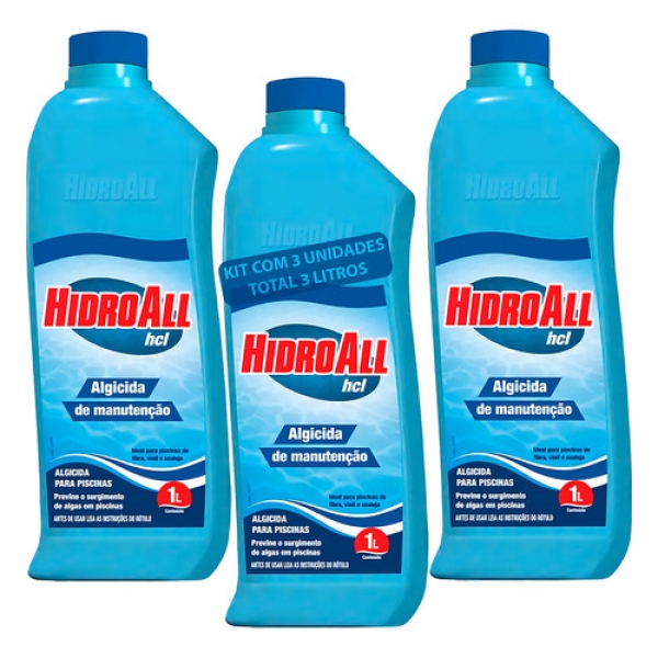 Informações do produto: Kit 3 Algicida Manutenção Piscinas Água Verde 3l Hidroall