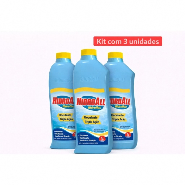 Kit 3 Clarificantes Hidrofloc 1Litro Hidroall - 3 Hidrofloc 1L