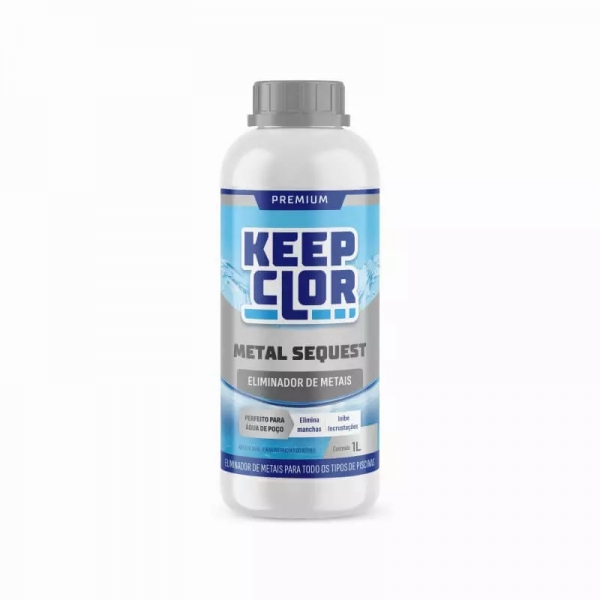 Metal Sequest premium KeepClor é um eliminador e inibidor de metais e incrustações que previne as indesejáveis manchas coloridas na piscina que podem ter sido causadas por excesso de sais metálicos na água. Pode ser utilizando mesmo com residual desinfetantes (cloros e poliquaternário) na água.